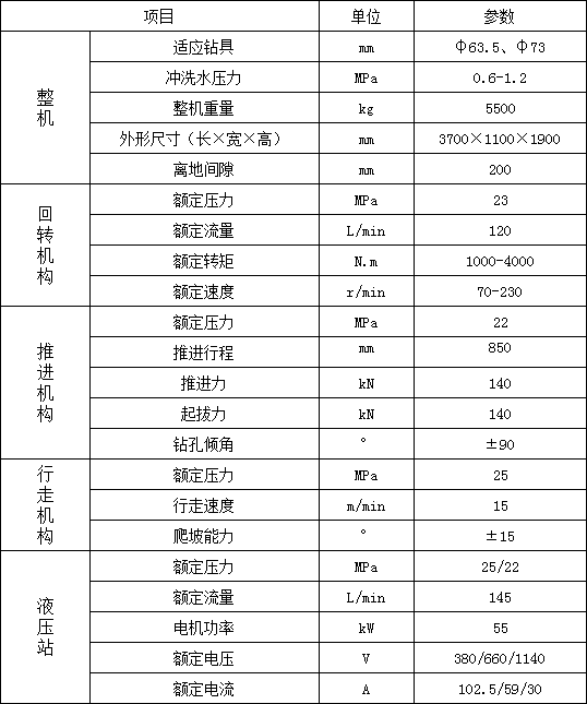 1. 履帶行走,大大提高移鉆、穩(wěn)鉆的效率,顯著減輕工人的體力勞動強(qiáng)度;